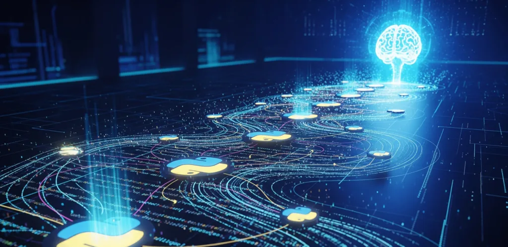 چرا پایتون؟ چرا C++ یا جاوا نه؟ چون پایتون زبان رسمی شرکت‌های غول‌پیکری مثل گوگل، متا و ناسا برای توسعه AI است. سادگی دستورات پایتون به شما اجازه می‌دهد به جای درگیر شدن با پیچیدگی‌های فنی زبان، روی “منطق هوش مصنوعی” تمرکز کنید.