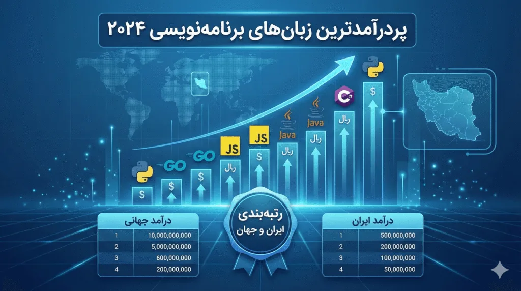 در این راهنمای جامع، با تکیه بر آمار و گزارشهای معتبر سال ۲۰۲۴ (مانند Stack Overflow و جابویژن)، لیستی از پردرآمدترین و محبوبترین زبانهای برنامهنویسی را رتبهبندی میکنیم. ما واقعیت بازار ایران را در کنار ترندهای جهانی بررسی خواهیم کرد تا شما بتوانید بهترین تصمیم را برای آینده شغلی خود بگیرید.